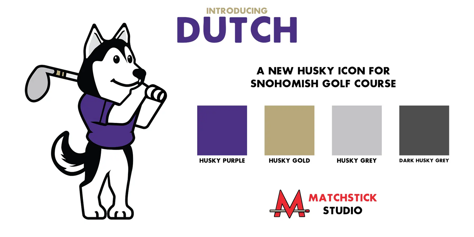 Snohomish Golf Course, located just outside Seattle, has been family owned since 1966 atop Dutch Hill. The team at Snohomish reached out and wanted a new series of logos for their course, with a main icon in multiple situations so it could apply to golf ball markers, apparel, restaurant staff, and more. This full service graphic design project resulted in Dutch the Husky.